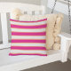 Add bright and colourful style to your patio or pool with our preppy stripe outdoor throw pillow. Design features wide horizontal stripes in vibrant raspberry pink flanked by thinner bands of coral orange on a white background. Pattern repeats on reverse side.