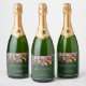 Colourful Pink and Orange Tropical Flowers on Gree Sparkling Wine Label