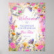 Colourful Pink Floral Birthday Tea Party Welcome Poster