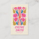 Colourful Pink Green Retro Hand Drawn Floral Girl Business Card