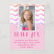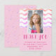 Colourful Pink Stars Birthday Thank you Kids Girl Photo Card. Cute pink birthday thank you card for your friends and family. Upload your photo and personalise the card with your name and text. The card has colourful stars and waves. Great as thank you card for girls.