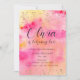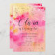 This adorable invitation features pink and yellow gradient, gold glitter confetti, the design is sweet and dreamy.