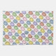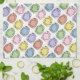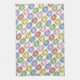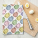 Colourful kitchen towel dotted with plates, knives and fork illustration.