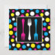 Fun gift for foodies and gourmets. Three forks and some very colourful polka dots. Perfect for birthday dinner party, or any event where bubbly champagne or sparkling refreshments are served.