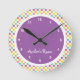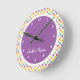 Colourful Polka Dot Purple Girl's Bedroom wall clock personalised with their name. Part of a large rainbow polka dot bedroom set.