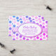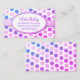 Pretty girl's play date calling card, done in a colourful blue, pink, and purple polka dot pattern, on a white background. A pink ribbon runs across the middle, with a pink edged oval text area, on top. Personalise the text for yourself, as a mummy card, or for your daughter. Great way to stay in touch with other moms and arrange play dates, birthday parties, and baby sitting co-ops.