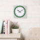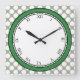 Get playful with this colourful and fancy wall clock! Most of the clock face is white, making the black Roman digits easy to read. The outer parts is where the colourful fun begins! First there is a bright green circle adding a little craziness. Then white polka dots cover the entire border, on a silvery grey background. You can replace the silver background as you like by customising this product!