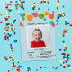 Show off a favourite photo with these festive birthday invitations. They feature colourful polka dots in red, orange, yellow, green and blue set against a light blue background and are ready to be customised with your custom text and your photo. The reverse side has coordinating polka dot confetti.