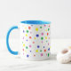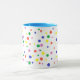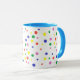 Painting of colourful polka dots in red, yellow, green, pink, and blue, in various sizes, printed on mugs. Can be customised. Pick the mug style of your choice.