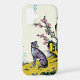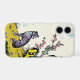 A stylised purple and blue sighthound rests within a vibrant landscape inspired by traditional Asian screen paintings and modern pop art on this phone case. Bold halftone dots and thick black outlines define the lean canine, contrasted against bright yellow terrain and deep green rock formations. Pink blossoms and floating clusters of colourful dots add a whimsical, graphic touch. This design offers a striking fusion of classical composition and contemporary comic book aesthetics.