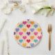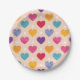 A vibrant and cheerful seamless pattern featuring colourful hearts in pop art style, with textured designs in shades of pink, yellow, purple, blue, and red, complemented by small white hearts on a soft peach background. Perfect for Valentine’s Day designs, wallpapers, or crafts.