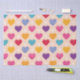 A vibrant and cheerful seamless pattern featuring colourful hearts in pop art style, with textured designs in shades of pink, yellow, purple, blue, and red, complemented by small white hearts on a soft peach background. Perfect for Valentine’s Day designs, wallpapers, or crafts.