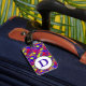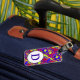 Colourful pop art .Abstract design by Alma Wad in vivid colours with letter D.It can be changed easily now . Playful pattern design with retro feel . . Customise now both sides of this luggage tag .Design by Alma Wad .