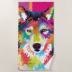 Shades of purple, pink, and blue come together in this beautifully vibrant pop art portrait of a colourful forest-dwelling wolf that's both trendy and modern.