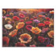 A vibrant expanse of poppies unfolds in a breathtaking array of deep orange, rich red, golden yellow, and regal purple, creating a harmonious tapestry of colour that sways gently with the breeze.