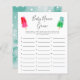 Cute popsicle theme baby shower "baby name" game card featuring watercolor illustration of colourful ice pops. The texts are editable. Perfect game to play during the shower. It asks guests to write down baby names that starts with each alphabets. Whoever finishes all alphabets first wins!