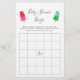 Have some fun at your baby shower with this bingo game card. Watercolor illustration of colourful ice pops. The bingo game asks the guests to guess what gifts the mummy-to-be will be receiving. Original illustration and design by Namibear Art Studio.©Namibear