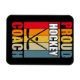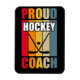 Hockey coach flexible magnet with hockey puck and sticks with colourful stripes and text that reads Proud Hockey Coach.