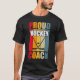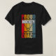 Hockey coach T-shirt with hockey puck and sticks with colourful stripes and text that reads Proud Hockey Coach.