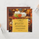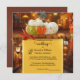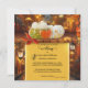A colourful autumn wedding invitation featuring two pumpkins with fall leaves in a fantasy steampunk scene. Festive lanterns add to the joy. On the back is an optional QR code with RSVP information. (you can easily delete this if you do not need it). Also the gold stylised ornament on the back is optional.