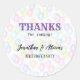 Joint birthday thank you stickers featuring a colourful balloon background with vibrant typography. Personalise the sticker with your children's names.