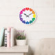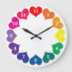 Colourful Rainbow Colour Hearts on White Large Clock