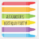 This super fun and colourful design is perfect for decorating your child's birthday party invitation envelope or for adding to birthday party favours! Design features colourful crayons stacked on top of each other. The colourful crayons are in rainbow colours. Inside two of the crayons is customisable text in black font where you can add your birthday boy or girl's name and your own birthday message or text. This cool crayon design on a sticker coordinates perfectly with our Colourful Rainbow Crayons Birthday Party Invitations.