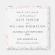 Colourful rainbow confetti sits above your special save the date details set in stylish elegant modern typography. Designed by Thisisnotme©