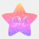 Colourful Rainbow Glitter Girly Star Shaped Sticker with a scripted white monogram and a purple name. Personalise with your name and initial.
