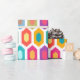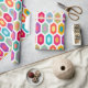 A tribal ikat pattern in a rainbow of colours - pink, orange, yellow, green, blue and purple. The colours are inspired by a granny smith crochet pattern, it has a bit of a retro vibe. This modern style wrap is great for a variety of occasions such as a birthday. It's also great for kids, teens and adults.