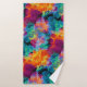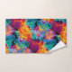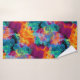 This towel features a colourful neon abstract rainbow watercolor and ink painting on a black background.