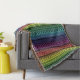 A quality printed throw has its advantages. This is a much finer weave throw than its loopier cousins, and though lighter, it is worth the investment for custom room accessorizing. The back is much prettier than the typical brown, and the fringe on the long sides very vivid, the selvage nicely done. Before photographing, I washed the throw in cold water, delicate, with a thicker woven throw the same size. On tumble dry low, this throw was dry in half the time as the other. This is a very practical quality if you use throws for furniture covers or to wrap up in frequently. The sleekness of the fabric makes it a great layer for accenting or protecting without the feeling of sitting on too much stuff. Perfect for napping or when you feel a light chill coming on. The color printing is beautiful and on this fabric, matched the design and color of my Photoshop image. This is an advantage for blending room fabrics and colors. The fringe on the short sides prints the colors from the design image and therefore varies from the side fringe. I streaked a white fractal line through the plaid pattern to give the illusion of weaving. This printed as crisp as an illusory thread, and put some white in the short side fringe, showing another advantage of print vs loomed- for artistic purposes, line lines, detail, and color integrity can be planned and preserved. My loomed throws have color limitations and more of a needlepoint texture. Print throws reproduce an exact image. The throw felt a little stiff straight out of the package, but this went away in the first delicate wash. Of course I searched the wash water for ink or bleeding and there was none.
