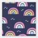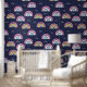Bring a burst of fun and modern style to your nursery or playroom with this colourful rainbow pattern wallpaper. Set against a deep navy blue background, the vibrant rainbow in pastel pink, blue, yellow, and purple add an energetic and playful feel to any space. This geometric design is both eye-catching and versatile, making it perfect for nurseries, kids’ rooms, or even as a bold accent wall in a more grown-up space.