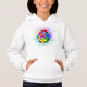 Large, blooming rose with rainbow petals on white background, painted over with splashes of colourful, bright paint. 3d