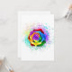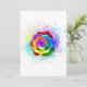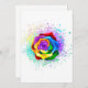 Large, blooming rose with rainbow petals on white background, painted over with splashes of colourful, bright paint. 3d