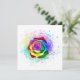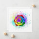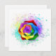 Large, blooming rose with rainbow petals on white background, painted over with splashes of colourful, bright paint. 3d