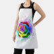 Large, blooming rose with rainbow petals on white background, painted over with splashes of colourful, bright paint. 3d