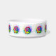 This is a heavy, durable bowl decorated with Tibbies of many colors, the perfect size for hungry/thirsty Tibs. The design is interesting and printing clear.