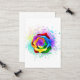 Large, blooming rose with rainbow petals on white background, painted over with splashes of colourful, bright paint. 3d