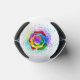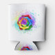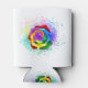 Large, blooming rose with rainbow petals on white background, painted over with splashes of colourful, bright paint. 3d