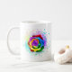 Large, blooming rose with rainbow petals on white background, painted over with splashes of colourful, bright paint. 3d