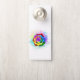 Large, blooming rose with rainbow petals on white background, painted over with splashes of colourful, bright paint. 3d
