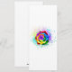 Large, blooming rose with rainbow petals on white background, painted over with splashes of colourful, bright paint. 3d