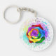 Large, blooming rose with rainbow petals on white background, painted over with splashes of colourful, bright paint. 3d