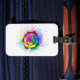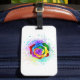 Large, blooming rose with rainbow petals on white background, painted over with splashes of colourful, bright paint. 3d