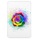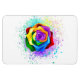 Large, blooming rose with rainbow petals on white background, painted over with splashes of colourful, bright paint. 3d