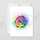 Large, blooming rose with rainbow petals on white background, painted over with splashes of colourful, bright paint. 3d