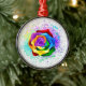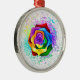 Large, blooming rose with rainbow petals on white background, painted over with splashes of colourful, bright paint. 3d