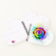 Large, blooming rose with rainbow petals on white background, painted over with splashes of colourful, bright paint. 3d