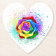 Large, blooming rose with rainbow petals on white background, painted over with splashes of colourful, bright paint. 3d